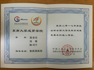 2017.12,我校学生在2017年全国大学生数学建模竞赛中喜获佳绩