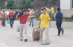 学院团委召开了迎新工作志愿者动员大会,由2004级同学组成的160人迎新工作志愿者队伍,积极热情地活跃在整个新生接待的各个环节。他们耐心地回复家长的咨询,热情地接送新生的行李,宿舍组的同学搬着一件件行李,忙碌于一楼与六楼之间,有的同学手都磨破了仍然坚持工作。在火车站负责接待工作的同学和在校内组织指挥交通的同学,冒着凉风冷雨坚守在自己的岗位上。整个迎新接待工作井然有序,给前来报到的1400多名新生和家长留下了深刻印象,受到一致好评。