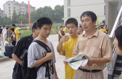 志愿者给家长送来茶水 | ![]() 志愿者给家长指示路线 |