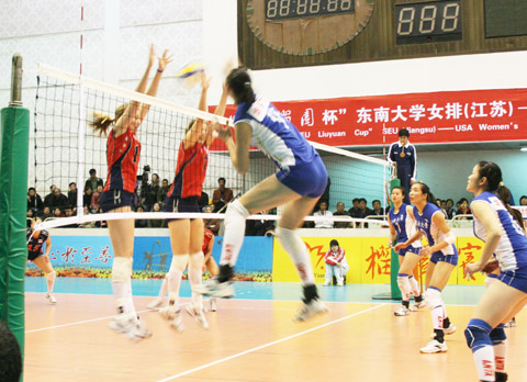 学院后藤体育馆江苏南钢篮球队主教练胡卫东向东南大学和我院领导赠签名篮球郎平教练在布置战术郎平主教练率美国女排与江苏女排在我院进行友谊赛江苏男子排球队与台北男子排球队在我院进行友谊赛全国大学生篮球超级联赛在我院举行