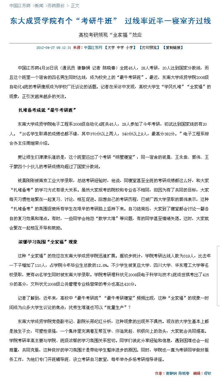 【中江网】东大成贤学院有个“考研牛班”