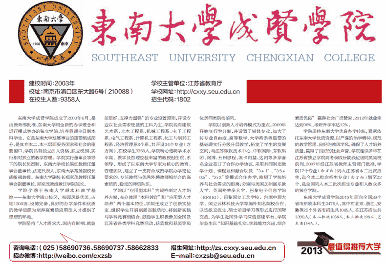 招生网址:http://zs.cxxy.seu.edu.cn
