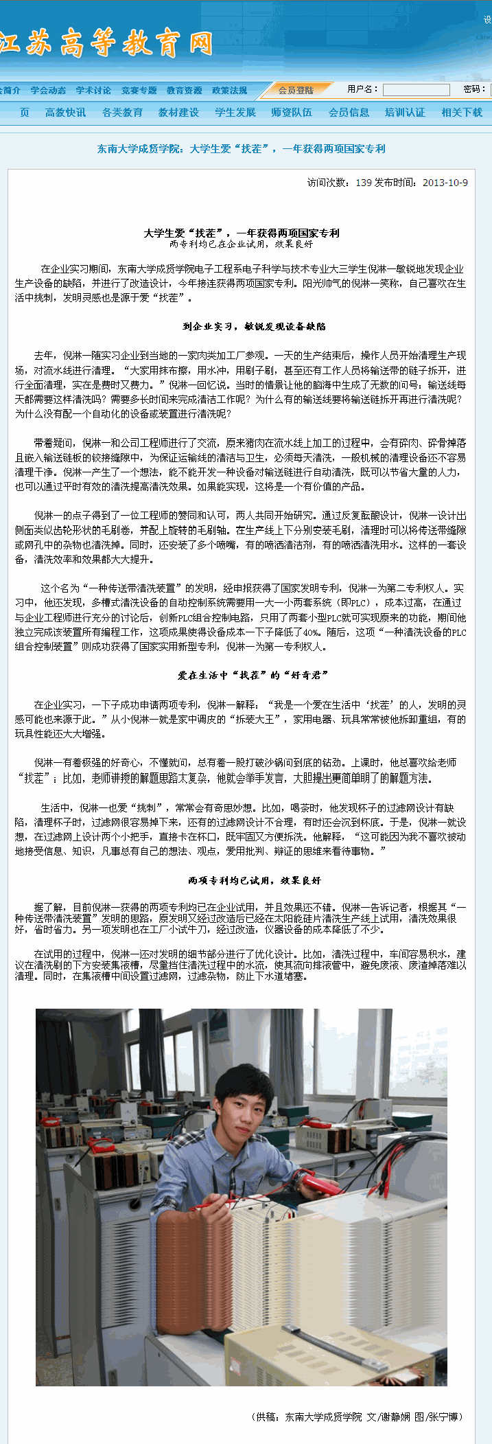 【江苏高等教育网】大学生爱“找茬”,一年获得两项国家专利