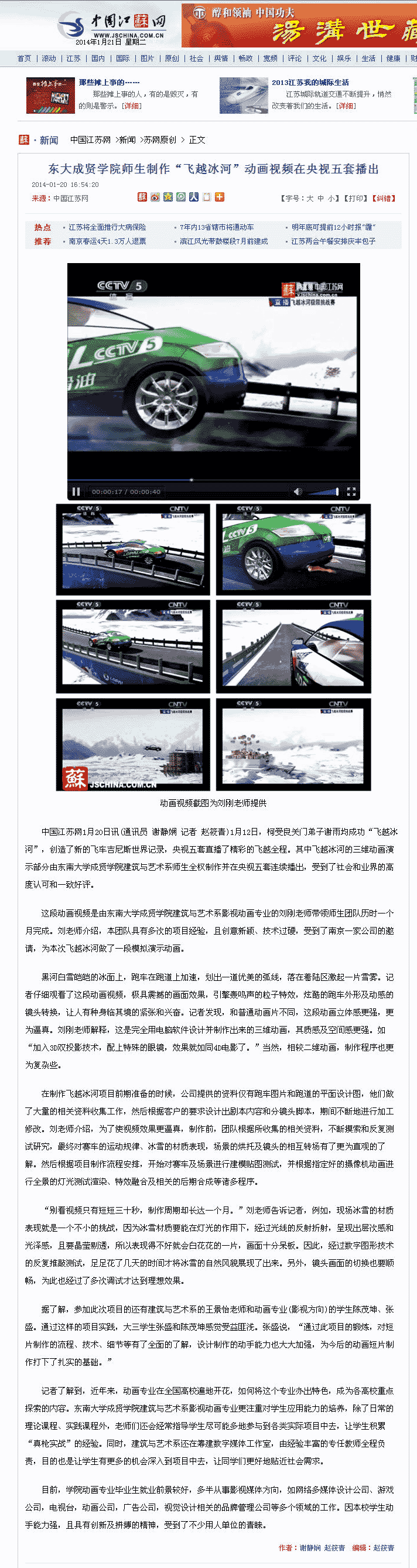 【中国江苏网】东大成贤学院师生制作“飞越冰河”动画视频在央视五套播出