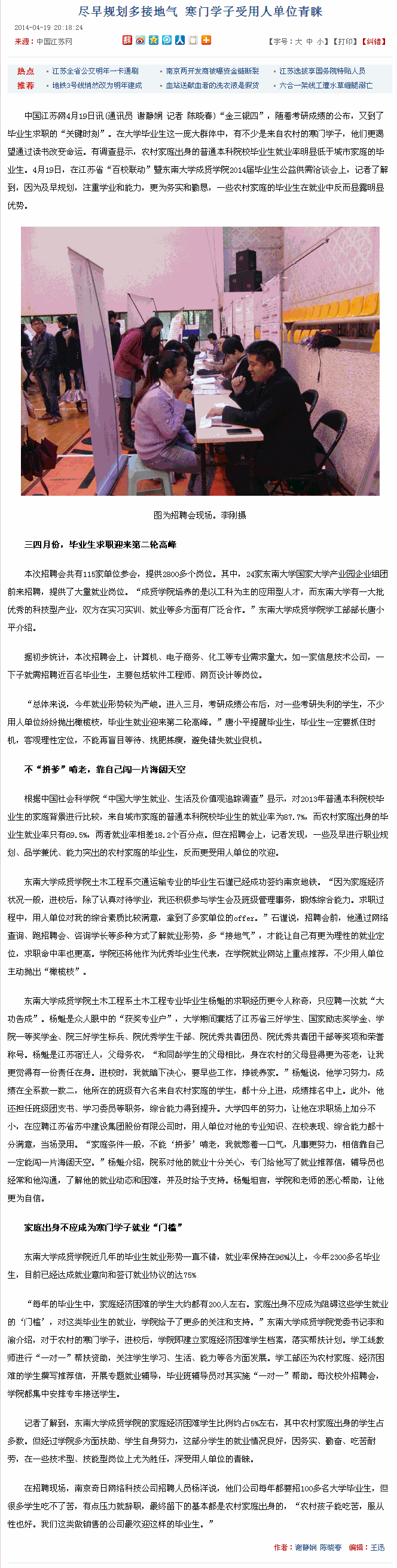 【中国江苏网】尽早规划多接地气 寒门学子受用人单位青睐