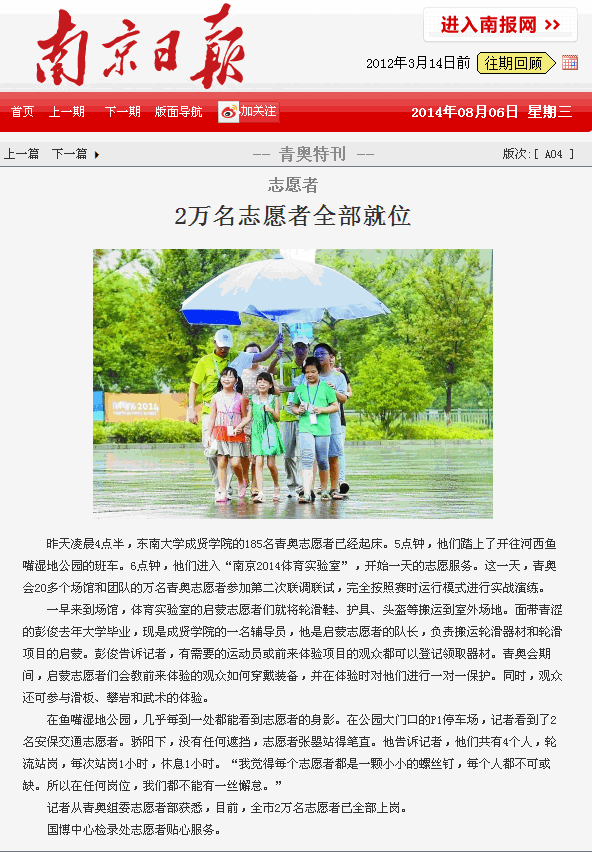 【南京日报】2万名志愿者全部就位
