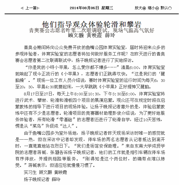【扬子晚报】他们指导观众体验轮滑和攀岩