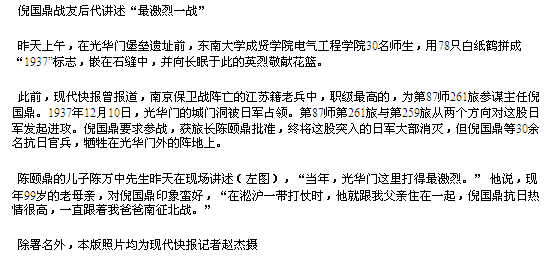 【现代快报】 倪国鼎战友后代讲述“最激烈一战”