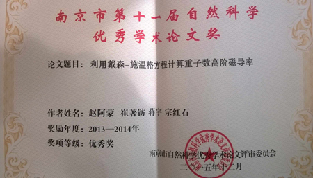 日前,南京市科学技术协会公布了南京市第十一届自然科学优秀学术论文评比结果。我院基础部赵阿蒙老师的论文“利用戴森-施温格方程计算重子数高阶磁导率”、经济管理系梅元清老师的论文“The Impact of Technological Regimes on the Establishment of Technological Standards”荣获优秀奖。