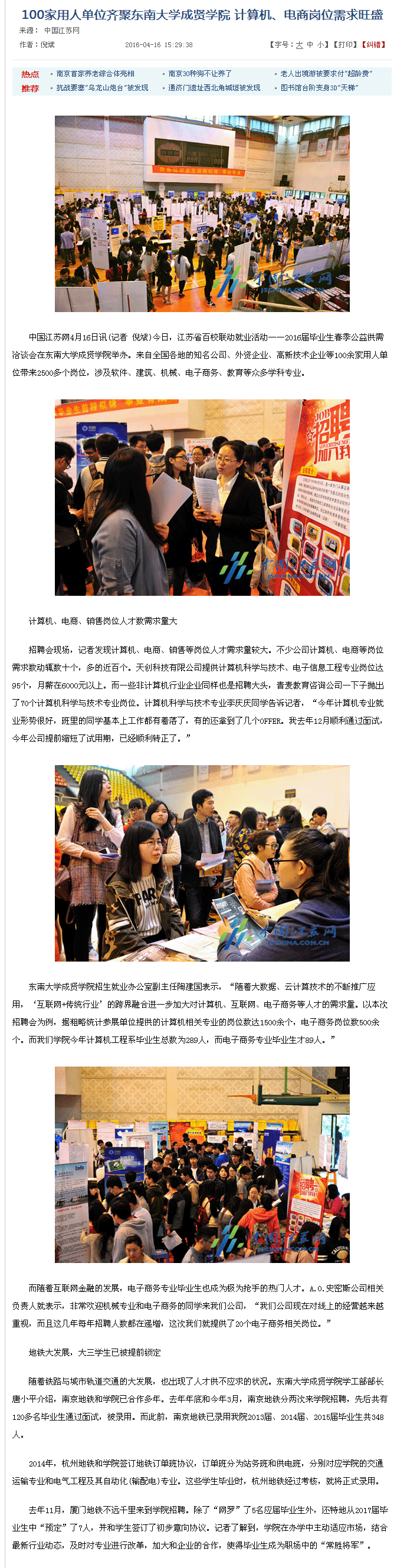 【中国江苏网】100家用人单位齐聚东南大学成贤学院 计算机、电商岗位需求旺盛