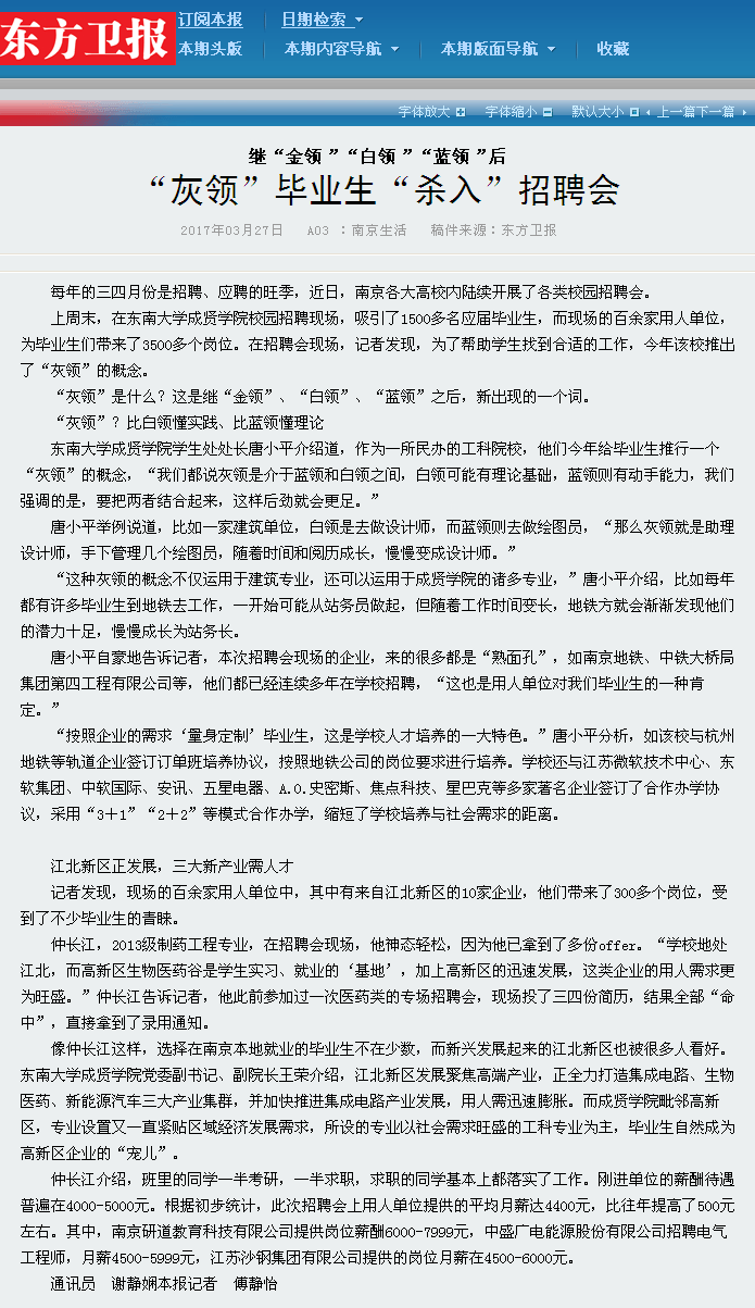 【东方卫报】“灰领”毕业生“杀入”招聘会