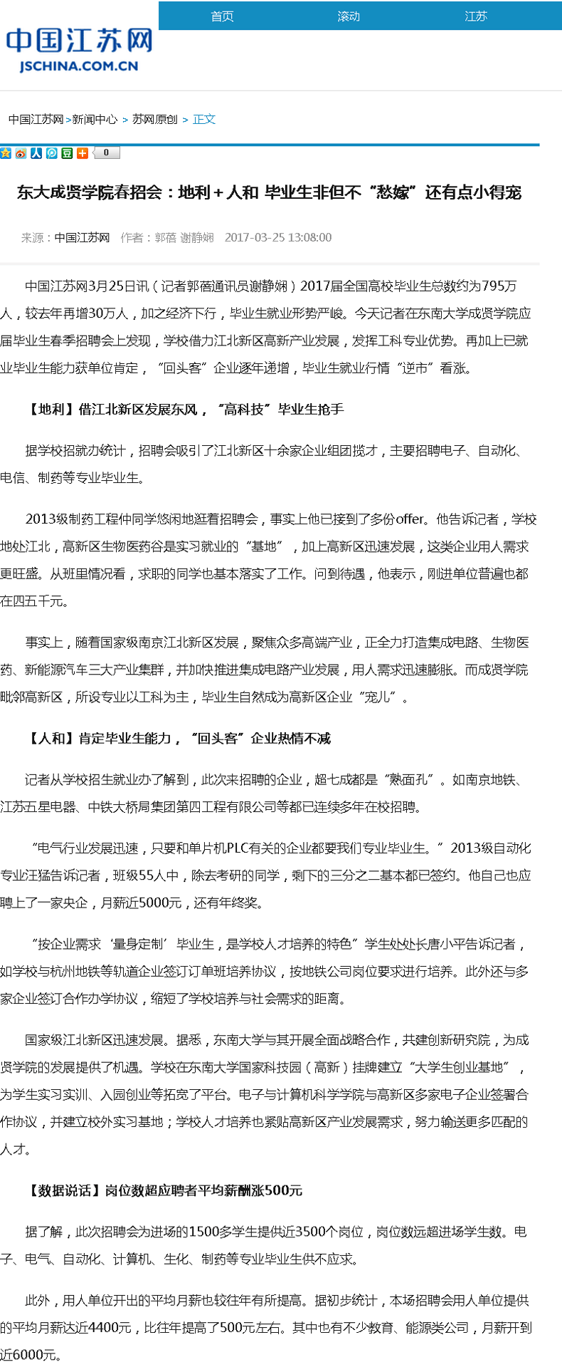 【中国江苏网】东大成贤学院春招会:地利+人和 毕业生非但不“愁嫁”还有点小得宠