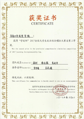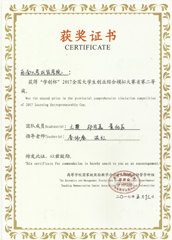 5月13日,在江苏大学举行的2017“学创杯”全国大学生创业综合模拟大赛江苏省本科组选拔赛中,我校3支代表队顽强拼搏,荣获两项江苏省二等奖的优异成绩。