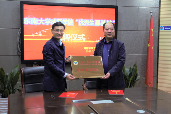 4月24日、25日,我校党委副书记、副院长王荣,电子与计算机工程学院党总支书记丁江,学生处副处长苏力及镇江招生组老师前往江苏省丹阳高级中学、江苏省大港中学、句容市第三中学进行座谈交流,并与三所中学签订合作协议,举行了“优秀生源基地”挂牌仪式。