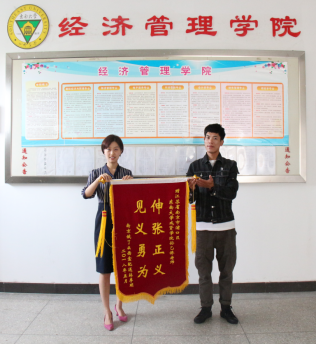 经济管理学院教师孙乙侨接受致谢锦旗