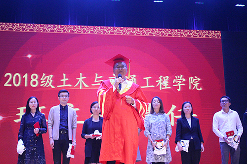 此次活动共分为三个篇章,“青春多彩帷幕起”“青春逐梦携手行”“青春立志当自强”。第一篇章通过对土木与交通工程学院的全方位介绍,以及各系主任老师对专业领域的解读,让同学们对今后所学专业有了更加深刻的认识,对自己今后的学习生活与未来职业有了更加清晰的规划。第二篇章通过对优秀校友的采访,让同学们近距离的感受榜样的力量;随后,学院还邀请了校企合作单位的负责人给同学们讲解了当下土木与交通行业最为前沿的技术,让大家切身体会到学院在深入推进综合改革中给同学们提供的多样化的实践平台和培养方式。学院还通过热情洋溢的节目表演,让同学们感受到校园文化的丰富多彩。第三篇章延续了土木与交通工程学院的传统,进行了班级指导和班主任的聘任仪式。仪式过后,党委副书记王荣嘱托所有在场的18级新生,希望他们养成阅读的习惯,不负青春年华。随后,16级工程造价1班进行了优秀班集体的展示,18级新生代表和优秀校友代表也为大家带来了朗诵《少年中国说》。