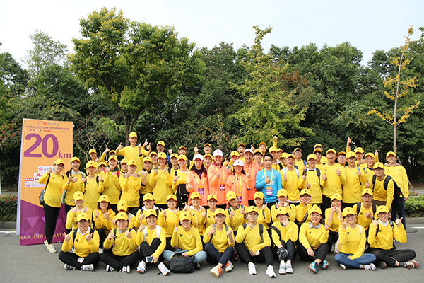 11月4日,由中国田径协会、南京市人民政府、江苏省体育局主办的2018南京马拉松暨全国马拉松锦标赛(南京站)在南京奥林匹克体育中心东门广场鸣枪开跑。我校53名师生志愿者参与了此次南马赛事的志愿服务,为来自国内外的8000余名半程马拉松运动员提供终点水站能量补给服务。