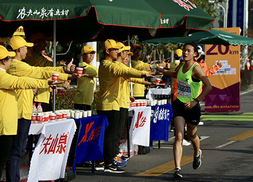 比赛当天凌晨4点,我校志愿者精神抖擞、整装待发,共同乘车前往位于紫金山麓、玄武湖畔的志愿服务地。在20公里处的补给点,我校志愿者们早已做好准备,为通过的运动员及时送上补给用品并加油助威,使运动员充分享受马拉松比赛的快乐和志愿者的热情。赛后,志愿者们主动整理物资与清理垃圾。志愿者们凭借出色的表现赢得了赛事主办方和运动员的高度认可,在感受到运动员永不言弃精神的同时,充分展现了东大成贤学子“奉献,友爱,互助,进步”的志愿精神。