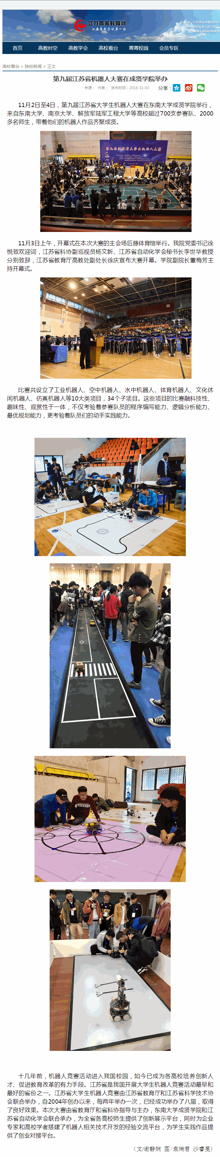 【江苏高等教育网】第九届江苏省机器人大赛在成贤学院举办