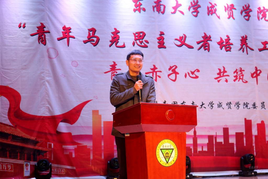 仪式后,东南大学马克思学院副院长盛凌振教授作《梦想、信仰、担当——谈时代青年的追求》主题报告,盛教授以生动详细的例子告诫同学们珍惜韶华,时不我待,并借习近平总书记“谈理想、谈学习、谈价值观、谈创新、谈笃实”的寄语激励学生骨干要明确奋斗目标,在学习中提高素养,在实践中磨砺意志,有梦想、有信仰、有担当;希望同学们承载学以成人的真信念,传递厚重悠远的真思想,肩负弘道立业的真使命,把握与时俱进的真精神,做一个与时俱进、务实笃行的有志者。