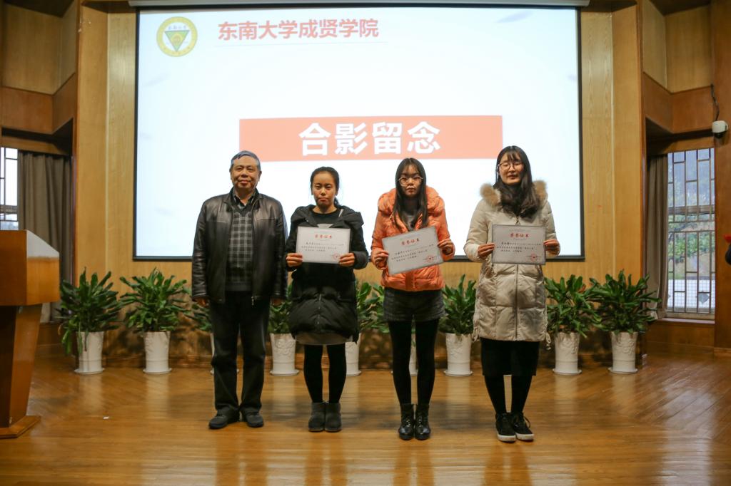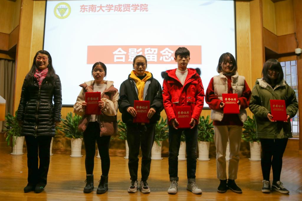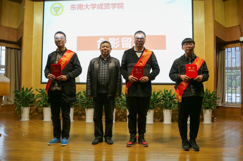 仪式上,沈黎芳老师宣读了学生资助宣传大使的聘任决定,唐小平处长为李嘉琨、李润印、房楚尧三位国家奖学金获得者颁发资助宣传大使聘书、佩戴绶带,并为荣获东南大学成贤学院“励志之星”的学生代表颁发了荣誉证书。学生处资助管理中心刘计婷老师和张平老师分别为勤工助学先进集体、先进个人代表颁奖。