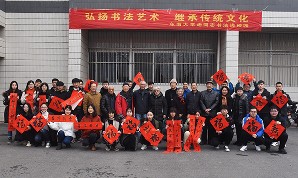 为庆祝改革开放40年,迎接中华人民共和国成立70周年,弘扬与传承中华传统文化,东南大学党委老干部处组织龚乐年、赵瑞林、陈永棣、朱宏仪、宣国良、朱玉佩、程德启、王忠等老同志开展以“弘扬书法艺术 传承传统文化”为主题的东南大学老同志书法进校园活动。