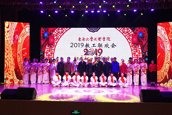 1月17日下午,东南大学成贤学院2019年新年教职工联欢会在综合楼报告厅隆重举行,学校党政领导,中国移动通信浦口分公司总经理戎峥、中国电信浦口区分公司副总经理钟峻玮、南京江北口腔医院副院长顾立新等来宾,各学院、职能部门负责人与全体教职工共同观看了精彩纷呈的文艺节目。