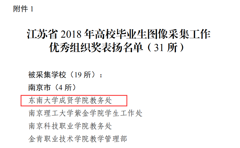 2018年底,江苏省高校招生就业指导服务中心组织了高校毕业生图像采集工作考核,我校评为 “江苏省2018年高校毕业生图像采集工作优秀组织奖”。我校在毕业生图像采集工作中,前期准备充分,数据准确齐全;现场组织到位,拍摄井然有序;后期及时校对,很好地完成图像采集工作。