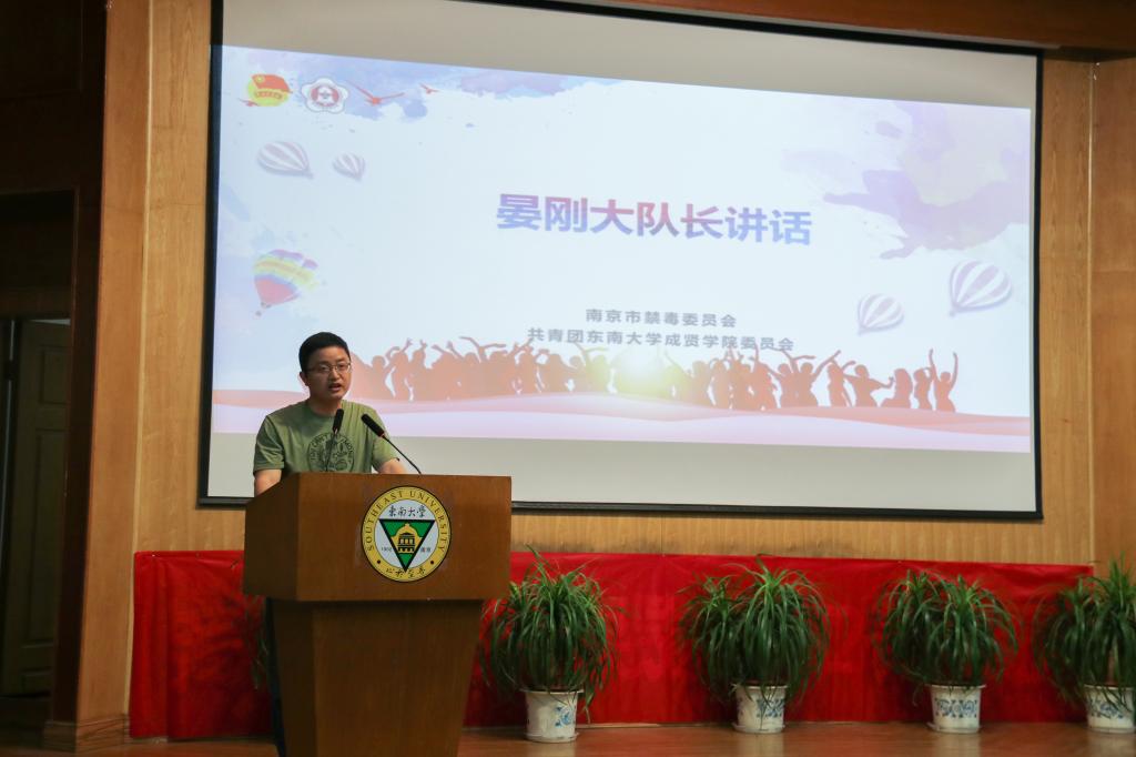 近日,由南京市禁毒委员会、共青团东南大学成贤学院委员会联合主办的2019禁毒校园行暨“禁毒杯”高校篮球邀请赛在东南大学成贤学院成功举办。南京市公安局禁毒大队长晏刚、警官陈林,东南大学成贤学院团委书记、人武部部长潘明烽及200余名禁毒志愿者参加了启动仪式。