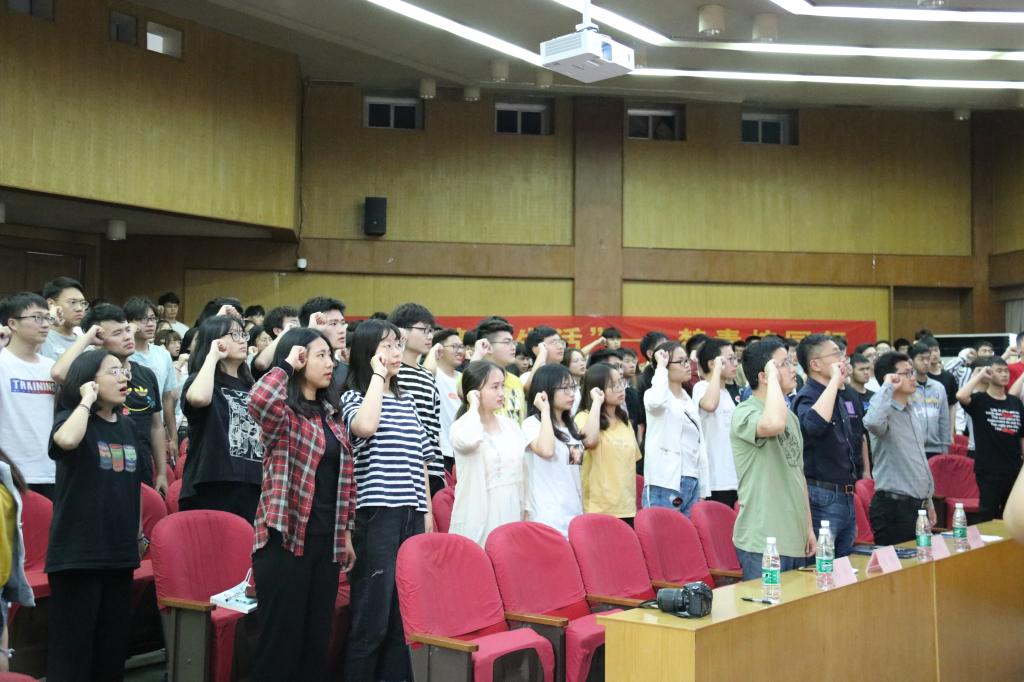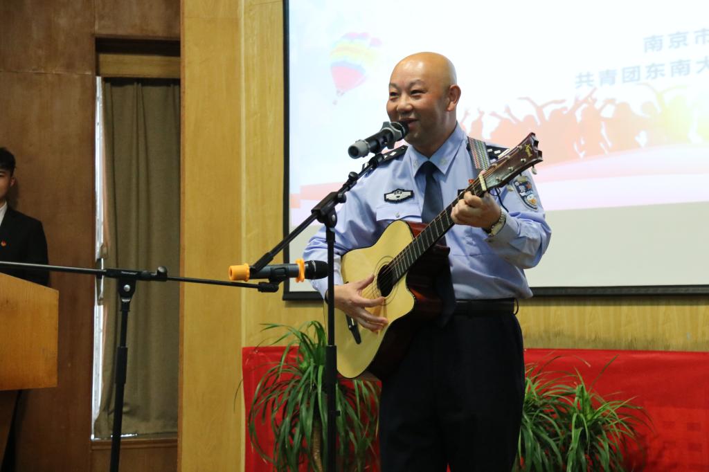 启动仪式上,团委书记潘明烽首先对南京市禁毒支队一行来我校指导禁毒宣传工作表示欢迎,随后他总结了近三年我校在禁毒宣传工作方面取得的成效和不足,并对我校志愿者提出了新的希望和要求。晏刚大队长充分肯定了我校志愿者在南京市禁毒工作中发挥的重要作用,对在禁毒工作中默默付出的师生表示感谢,希望我校志愿者能一如既往地支持禁毒事业,开展形式多样、丰富多彩的禁毒主题活动。随后,陈林警官现场弹唱了《禁毒志愿者之歌》,倡导警民携手、全员参与,为打造无毒、平安的美好南京添砖加瓦。最后,全体禁毒志愿者进行庄严宣誓,表明了成贤学子禁毒宣传的坚定决心。
