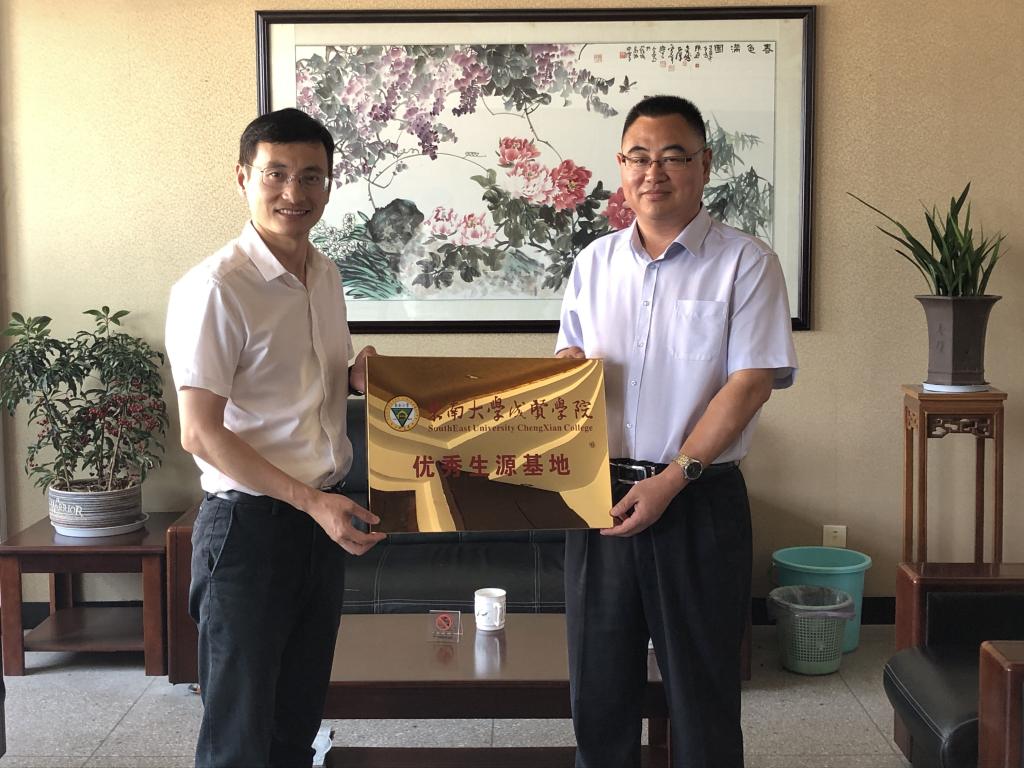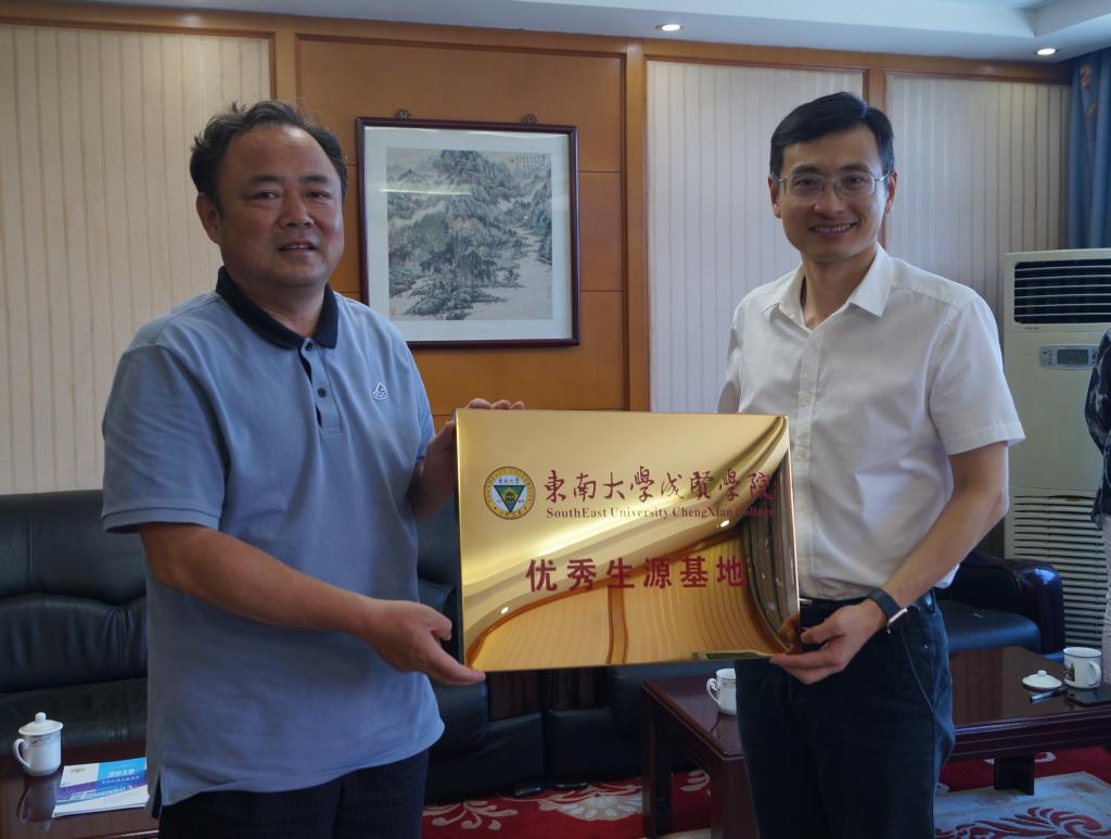 6月12日,东南大学成贤学院党委副书记、副院长王荣,学生处处长唐小平、泰州招生组负责人魏丽玲等一行四人前往江苏省兴化中学、泰州市姜堰罗塘高级中学调研,签署了优秀生源基地建设协议,并举行了“优秀生源基地”授牌仪式。