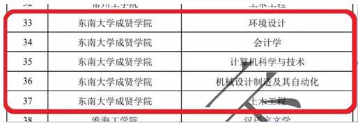 东南大学成贤学院环境设计、会计学、计算机科学与技术、机械设计制造及其自动化、土木工程5个专业入选江苏省一流专业,入选专业数量排名江苏省独立学院之首!