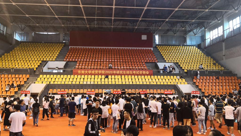9月27日下午,东南大学成贤学院在后藤体育馆成功举办第三届研究生报考咨询会,搭建便捷高效的2020年研究生报名指导和交流平台,东南大学、南京理工大学、南京航空航天大学、河海大学、南京师范大学等15所省内高校研究生招生办公室的负责老师参会。各高校为我校近千名考生介绍本校研究生招生政策、培养特色、毕业生就业等相关信息,并提供现场咨询,解答2020年研究生考试中考生的困惑,帮助广大考生正确选报院校及专业。