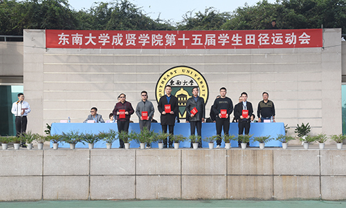 11月2日,东南大学成贤学院第十五届学生田径运动会在东南大学成贤学院田径场举行。东南大学体育系党总支书记蒋波,东南大学成贤学院党委书记邢纪红,党委副书记、副院长王荣,学校各职能部门负责人,二级学院总支书记、综合办主任和辅导员参加了运动会开幕式,开幕式由党委副书记、副院长王荣主持。