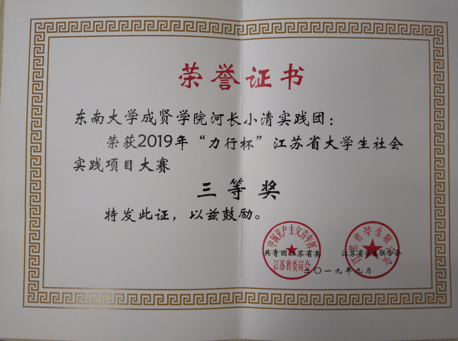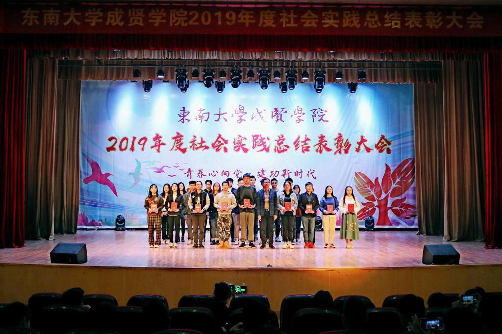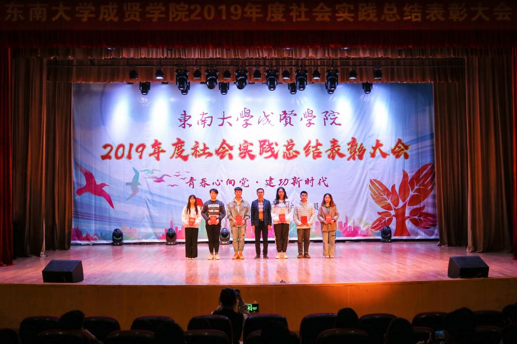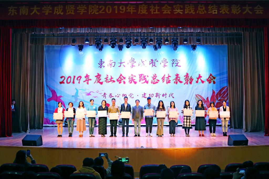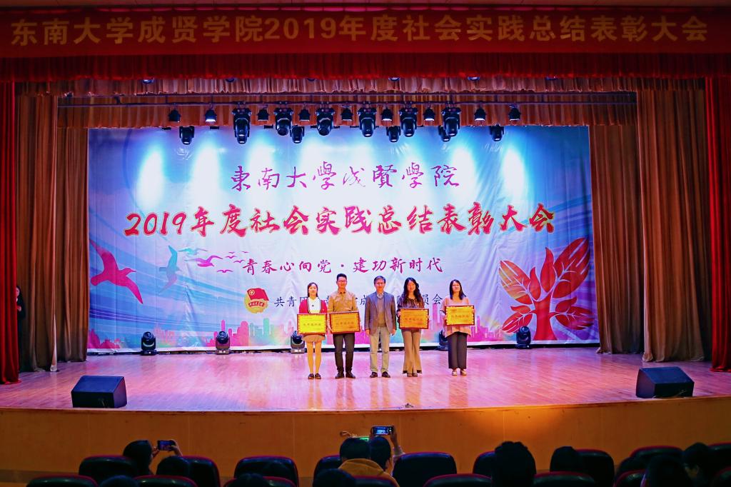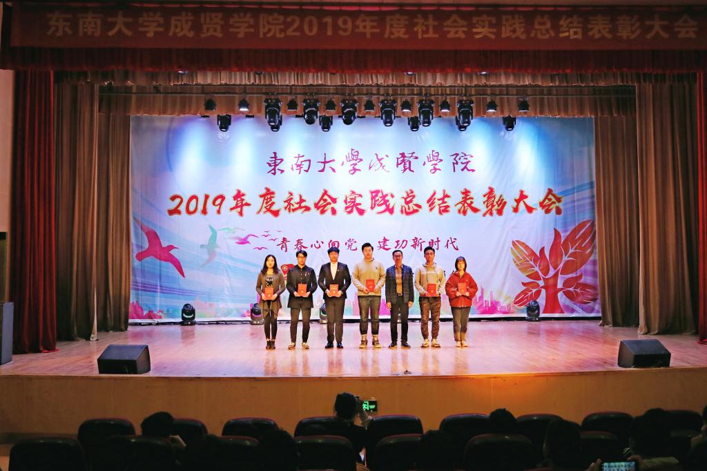 东南大学成贤学院2019年度社会实践成果丰硕。其中,由宋奎老师指导的“河长小清”实践团荣获2019年“力行杯”江苏省大学生社会实践项目大赛三等奖;由王晶晶老师指导的“皮皮支教小分队”经过专家评审遴选,入围2019年湖南省青年志愿者关爱农村留守儿童“七彩假期”志愿服务优秀团队,并获得了湖南省级党建带团建专项支持关爱乡村青少年志愿服务行动专项5000元支持资金;另外,电子与计算机工程学院指导的“百里南湖红旗飘,千载汉韵吴越扬”实践团、土木与交通工程学院指导的“磐石”实践团、机械与电气工程学院指导的“青梦团”、校团委宣传部组建的“潮起金陵”和校团委志愿者工作部组建的“禁毒小分队”凭借优秀的实践成果被评为“东南大学优秀社会实践团队”。