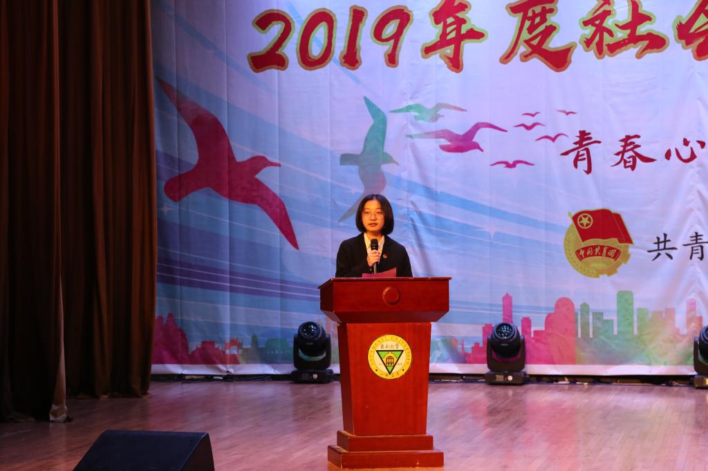 表彰大会上,学生处处长施杰和学生处副处长苏力分别颁发了“优秀组织奖”“优秀指导老师”和“优秀团队奖”“优秀学生”;优秀指导老师代表马丽、优秀学生代表陈秋婕分别做了精彩发言,分享了社会实践中的经验与体悟;优秀团队代表“百里南湖红旗飘,千载汉韵吴越扬”实践团进行了生动形象的团队展示和现场访谈,讲述了前往浙江省嘉兴市探寻红色革命精神和传统文化的过程。最后,施杰处长进行总结讲话,对获得2019年度社会实践表彰的集体和个人表示祝贺,对学生们取得的实践成果给予了充分肯定;鼓励更多师生积极投身社会实践,培养社会责任感、创新精神和实践能力。