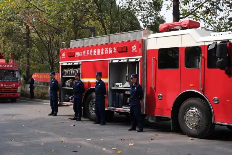 高空缓降逃生、火场实景灭火、应急处置救援等在新闻中看到的场景,在校园就可以亲身体验。11月8日,消防器材及实景体验活动在食堂前主干道开展。通过VR体感等现代信息技术,师生现场体验了不同场景、不同介质的灭火实操以及高空缓降逃生,通过真实的场景模拟,增强了师生的代入感与实操感,更好地掌握了消防器材的使用方法及处置初期火灾、逃生自救的能力。南京消防泰山中队的队员还现场介绍了部分应急救援设备。