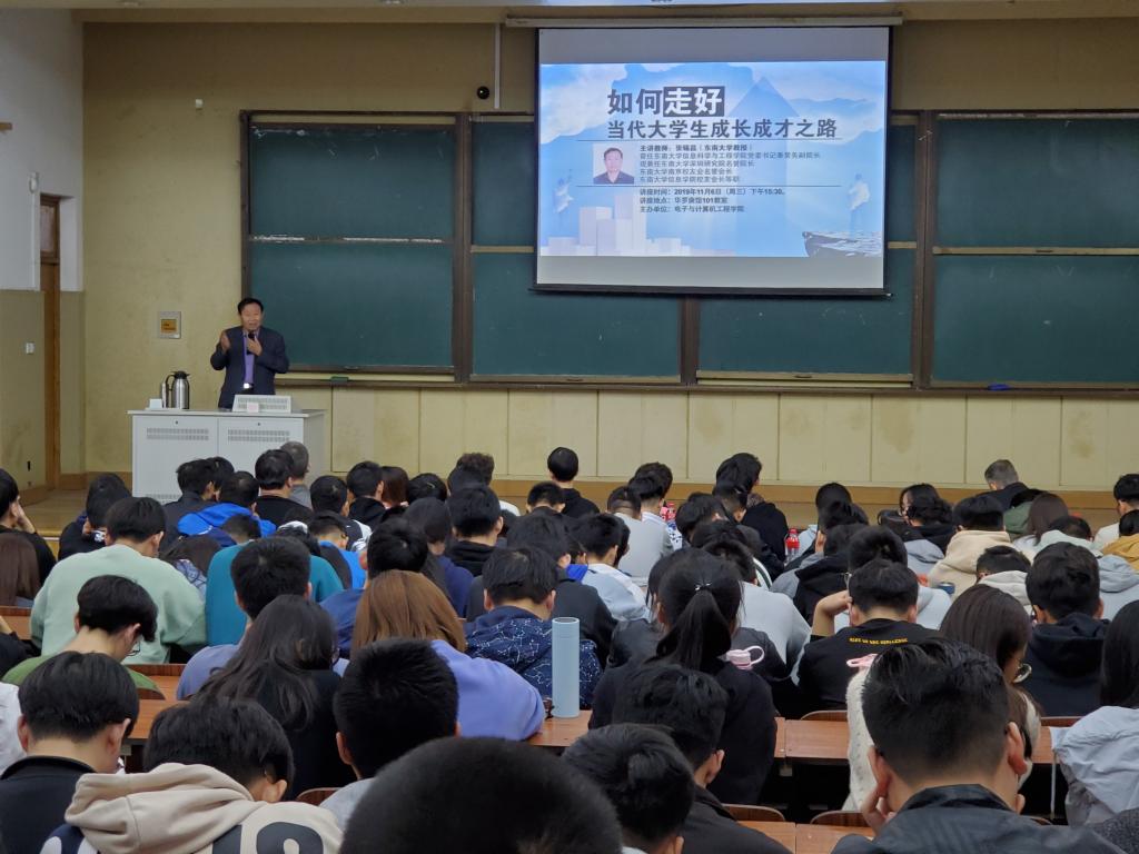 11月6日下午,东南大学张锡昌教授在华罗庚馆101教室作“如何走好当代大学生成长成才之路”主题讲座,电子与计算机工程学院全体辅导员及300多名同学认真聆听了此次讲座。讲座由电子与计算机工程学院党总支书记季永华主持。