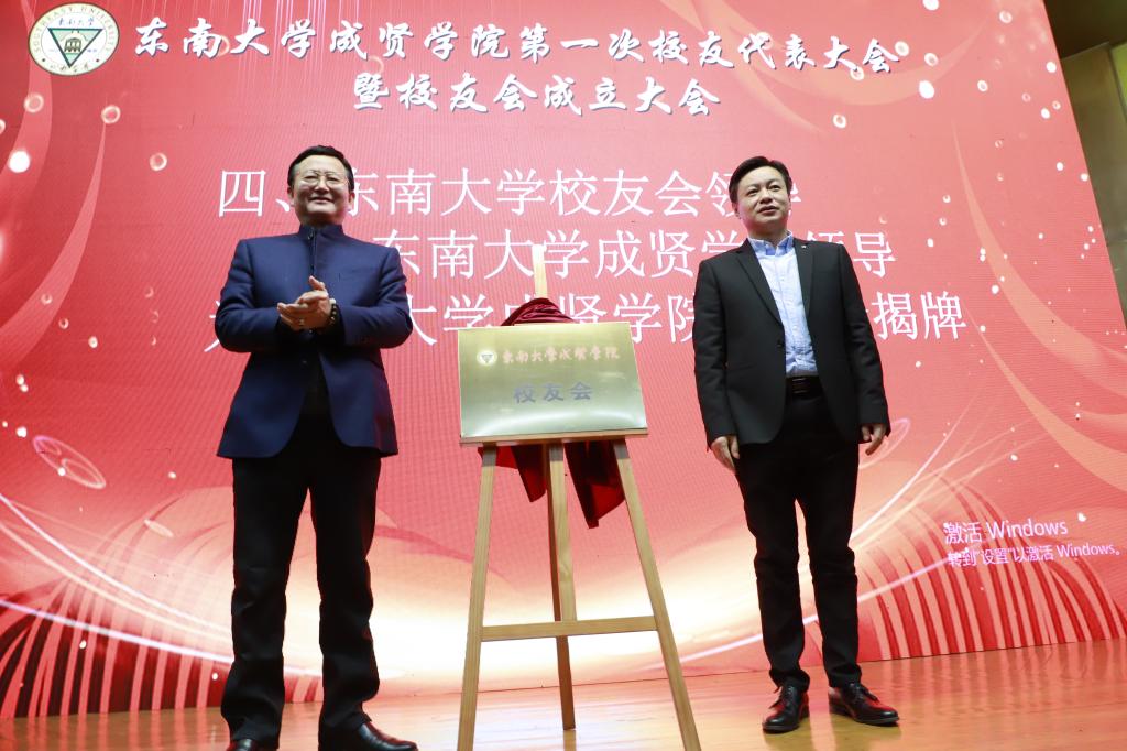 东南大学校友总会副秘书长曹军、学院党委书记邢纪红为校友会揭牌
