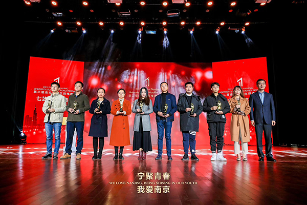 12月15日上午,由共青团南京市委、南京市学生联合会主办的第二届南京大学生微电影节闭幕式暨“七艺奖”颁奖典礼在南京财经大学仙林校区举行。南京团市委书记吕璟、南京市网信办副主任潘涛、南京团市委副书记石磊,以及来自微电影节评审委员会、驻宁各高校团委、南京市各团区委的嘉宾和来自24所高校的大学生代表出席活动,东南大学成贤学院团委书记潘明烽,辅导员袁兴博、孙浩带获奖团队参加了此次活动。