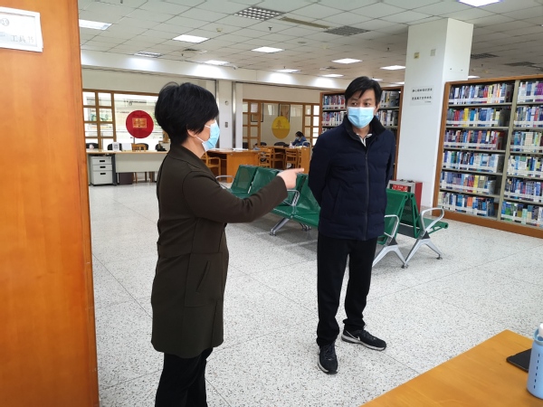 4月22日上午,东南大学成贤学院党委书记邢纪红、副院长董梅芳、图档信息中心主任沈冬生巡查了院图书馆,对图书馆的疫情防控及开放运行等工作进行了检查。校领导详细询问了图书馆的疫情期间开放的方案落实情况,仔细察看了已经开放的部分阅览室的通风、消毒以及读者座位安排是否合乎防控要求,并对座位预约调整为分段模式、阅览室的消毒和通风、疫情期的读者的管理等方面作出了相应的细节要求。