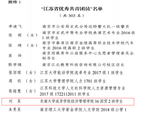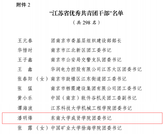 校团委书记潘明烽2月4日报名参加江苏省疫情防控应急保障青年志愿服务队(担任第五组组长),为医院运送紧急防护物资、为医护人员家庭送去温暖和呵护,做好援鄂一线医护人员工作、家庭各方面后勤保障工作,截止3月27日,为江苏省援助湖北医疗队:省人民医院、省中医院、鼓楼医院、中大医院、南京第一医院、江苏省第二中医院等医院159位一线医护人员家庭提供242次后勤保障服务,运送捐赠防护物资5次,共计完成247次保障服务工作,累计行驶1340公里,服务超过120小时以上,被团省委授予江苏战“疫”青年“先进团员”、“优秀共青团干部”称号;校团委兼职学生副书记、大四毕业班刘昊同学连续两个月奋战在南京站一线开展消毒喷淋、科普防疫知识宣传、测温、咨询引导等工作,被团省委授予“优秀共青团员”称号。电子与计算机工程学院顾洪宇、制药与化学工程学院叶昕怡和经济管理学院刘昊、王孟欣四位同学被评为“江苏省大学生抗疫先进个人”。另外,潘明烽老师和刘昊、叶昕怡、顾洪宇、陈关龙、燕阳翔宇还被评为东南大学抗击疫情志愿服务活动“优秀志愿者”。东南大学成贤学院团委根据志愿者疫情防控工作表现,评选出了60名“十佳疫情防控优秀志愿者”和80名“疫情防控优秀志愿者”,以表彰他们在疫情防控志愿服务工作中的突出贡献。