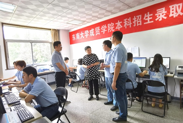 8月22-23日,东南大学成贤学院党委书记邢纪红,常务副院长许映秋,党委副书记、副院长王荣到本科招生录取现场检查指导招生录取工作,并亲切慰问了招生工作人员。