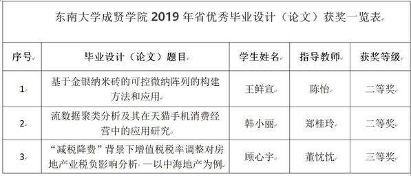日前,江苏省教育厅对2019年江苏省普通高校本专科优秀毕业设计(论文)评选结果进行了公示。东南大学成贤学院共获得3个奖项,其中二等奖2项、三等奖1项。