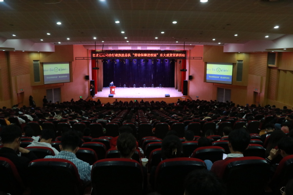 10月22日下午,由南京江北新区综合行政执法总队主办,校团委和就业办承办的“解读大学生常见就业问题,提高劳动保障维权意识”普法宣传活动在我校综合楼313报告厅举行。2017级毕业班、2018级部分学生参加了活动。