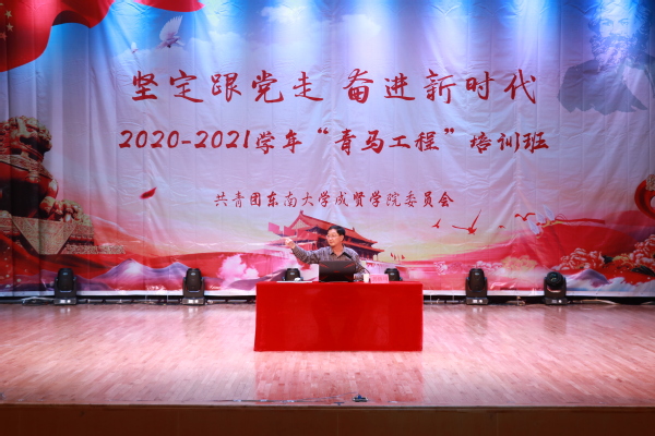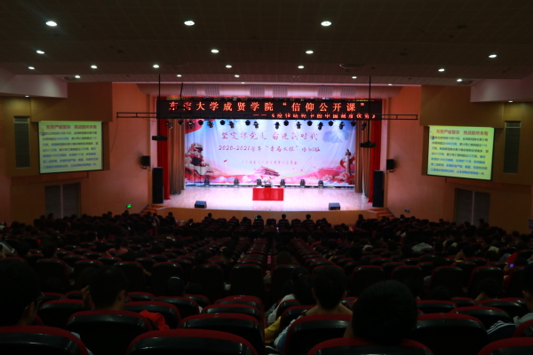 10月21日晚,由校团委主办的“信仰公开课”《疫情防控中的中国制度优势》主题讲座在综合楼报告厅举行。中共南京市委党校郝继明教授主讲,300多名20级新生团支委聆听了本次讲座。