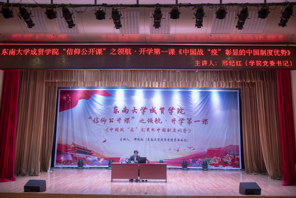 为深入贯彻学习习近平新时代中国特色社会主义思想,认识中国特色社会主义制度的显著优势,了解与掌握国家形势与政策,全面加强大学生思想政治教育,10月30日下午,校团委在综合楼报告厅举办“信仰公开课”之领航·开学第一课《中国战“疫”彰显的中国制度优势》主题教育活动。东南大学成贤学院党委书记邢纪红教授担任主讲,全体辅导员及400多名学生聆听了报告。
