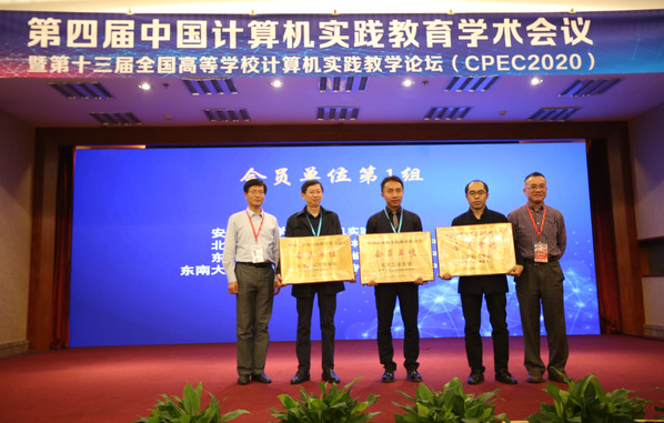 大会举行了热烈的授牌和颁奖仪式,东南大学成贤学院计算机专业实验教学中心获颁中国计算机实践教育联合会会员单位牌匾。