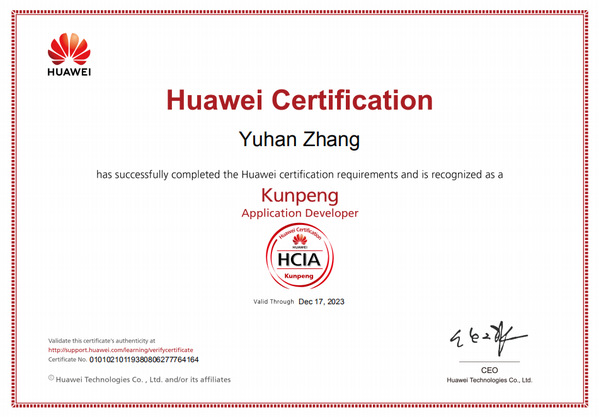 本次活动受到了参培学生的积极响应,大家通过使用华为云,系统了解华为鲲鹏生态,掌握鲲鹏平台的使用,基于鲲鹏平台进行应用开发。课堂学习氛围良好,学生与华为鲲鹏讲师课上课下积极互动。课程结束后,认证考试通过率高。后期我校将开展华为“昇腾”AI全栈全场景讲座活动。