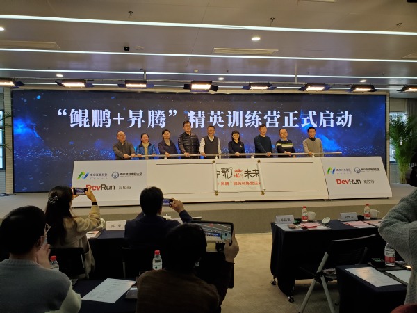 11月30日电子与计算机工程学院领导在南京集成电路大学参加华为“鲲鹏+昇腾”校园精英训练营启动仪式。南京江北新区管委会副主任陈潺嵋到场致辞,提出全力推动华为“鲲鹏+昇腾”产业发展,促进鲲鹏技术与人才生态建设。南京江北新区以南京集成电路产业服务中心、南京集成电路大学为载体,与华为技术有限公司发起面向目标合作高校以公益形式举行华为鲲鹏技术工程师培训校园行活动,以及昇腾AI系列讲座,助推高校培养高端实战化鲲鹏技术人才。我校积极申报,成为华为“鲲鹏+昇腾”生态产业江苏首批公益培训学校。